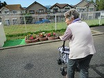 いい天気の日は外気浴!玄関前には外に出ようと人だかりが出来ています。