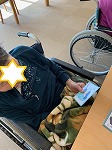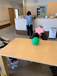倉庫の片付けをしている時・・・テーブルの上に輪投げを出しておいたらご入居者様が