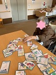 お正月遊びで使用したカルタを片付けていたらご入居者様数名で