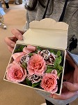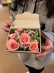 イベントの見本にスタッフがフラワーアレンジメントボックスを作って