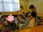にお手伝い頂き完成です。クリスマスツリーとは違いチカチカ