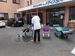ご入居者様の車椅子を一台一台丁寧に洗車!!