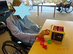 小さいものを一所懸命つまみ同じ形の型にはめ込む・・