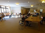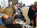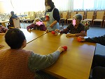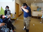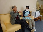 午後のレクはお手玉で玉送りゲームを行いました。隣のご入居者様と息が