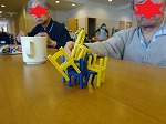 小さなミニチュアの椅子をバランスよく積み重ねていきます!