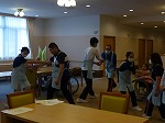 安中では毎日、転倒予防体操鬼石モデルを取り入れ、集団リハビリを1階・2階で行っています。写真では分かりにくいですが、ズンドコ節の音楽に合わせ楽しく歌いながらリハビリしています。