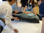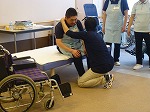 今回の研修は移乗介助。職員の腰痛予防の為にも、入居者様の安全の為にも知っておかなくてはいけない知識を