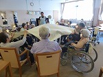 午後のレクではバスタオルを使用してボール運びを行いました。手から手でボールを渡すことが困難な利用者様も2人でバスタオルを使ってのボール渡しは協力して上手く出来ていました。笑顔いっぱいで遊ばれていました。毎日色々なレクレーションで暑い夏を乗り切っていきたいと思います。