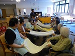 午後は利用者様と色々な遊びをして楽しんでいます。シーツを使ったボール遊びは多くの方が参加出来るので皆さん楽しそうです。そろそろ七夕の準備を開始しようと思います。今年も全ての利用者様の短冊を飾り、願いが叶う事を祈っております。
