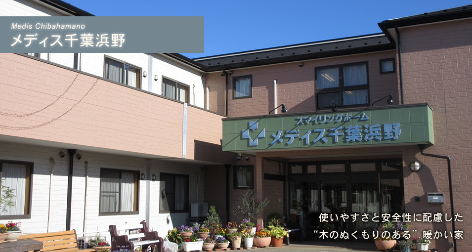 スマイリングホームの名前の通り、やさしさと笑顔のあふれるホームです。 メディス千葉浜野では、看護職員が24時間365日常駐しており、 「入居者様の毎日の暮らしを安心して楽しむことができる。」 生活環境の提供に努めております。 またご入居者様一人ひとりの身体能力やリズムを大切にし、最適な介護の提供にも心がけております。