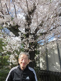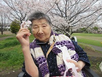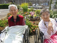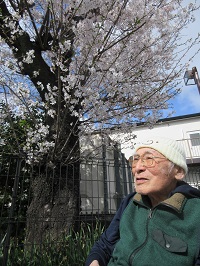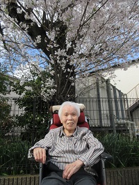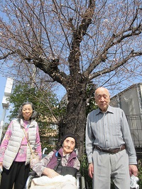 お庭にある桜が咲いているか、入居者様と確認に行きました。