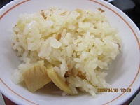 メニューは たけのこご飯・清まし汁・鶏の山椒焼・炊き合わせ・フルーツ です