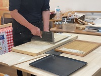 本日手打ちそばイベントを行い、入居者様の目の前でそばを打って頂きました。