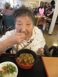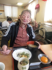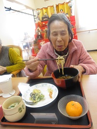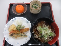 メニューはそば・天ぷら・茶碗蒸し・フルーツと豪華で、皆様美味しそうに食べられていました。
