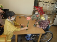 カーネーションを使ったワンちゃん🐶モチーフのアレンジメントで、お顔がそれぞれ違っていて個性豊かな作品が出来上がりました。