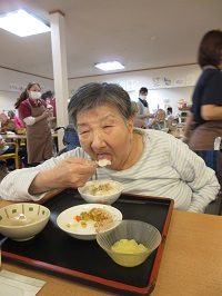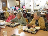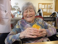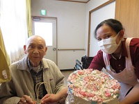 入居者様やスタッフに祝われて、嬉しそうにされていました!