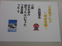 メニューはご飯・かきたま汁・鶏ちゃん(けいちゃん)・ごま豆腐・フルーツです。