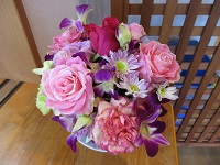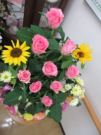 色々なお花が使われていますが、ピンク系の可愛らしいアレンジメントになっています。