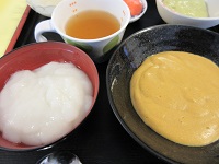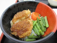 メニューはソースカツ丼・味噌汁・切干しの酢の物・杏仁フルーツでした。