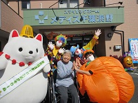 会場となる駐車場を風船などで装飾し、職員も仮装をしてお客様をお出迎えしました。