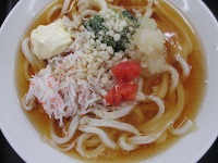 今日のメニューはサラダうどん・清まし汁・花五目卵巻・フルーツでした。