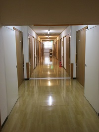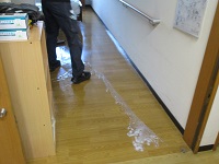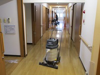 お部屋にこもりがちな入居者様もワックス中はラウンジで