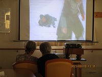 日本語の吹き替えがないため、字幕で観賞されていました。
