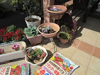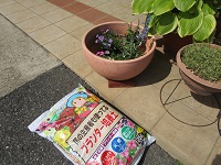 玄関周りのプランターのお花を植える準備をしています