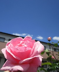 今日は快晴なので、青空にピンク色のバラが良く映えてとても綺麗です😍