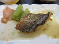 メニューは、赤飯・味噌汁・メバルの煮付・ドレッシング和え・フルーツでした