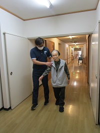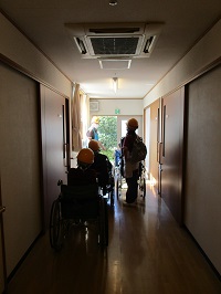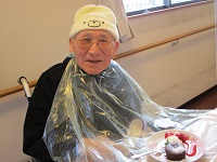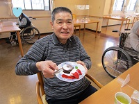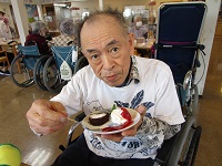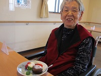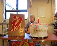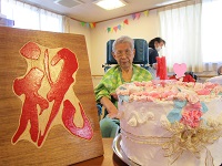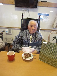 スタッフや入居者に祝われて、とても嬉しそうでした。