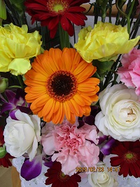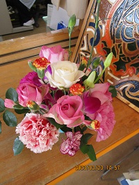 ピンク色のお花がメインで可愛らしいアレンジメントになっています。
