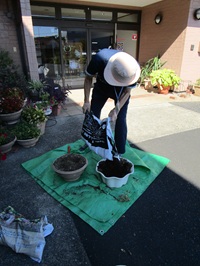 いろんな色と種類の花苗を買ってきて、バランスを見ながら植えて頂きました