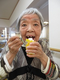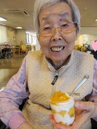 スタッフや入居者様に祝われて、とても嬉しそうにされていました