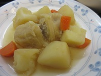 メニューは赤飯・味噌汁・ロールキャベツ・酢の物・フルーツです