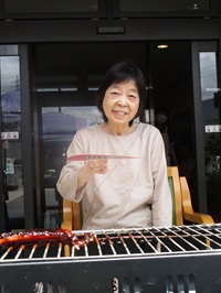 外で焼いているうなぎを見学して頂いてから、甘酒も飲んでいただきました