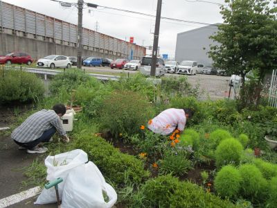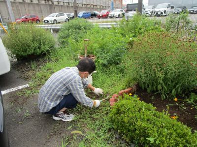 男手が必要と施設長と営繕さんが草取りに取り組んでくれました