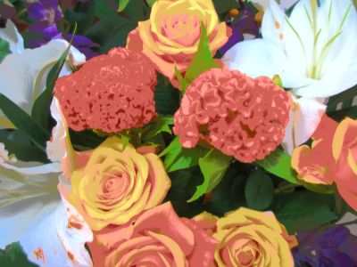 真ん中にケイトウの花