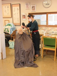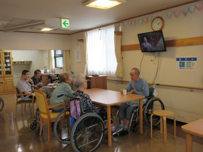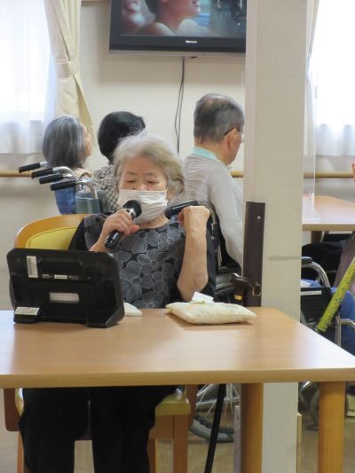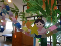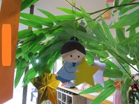 施設の玄関には七夕飾りが飾られていて、入居者様のお願いも飾られています