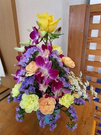 応接室に飾るお花を生けて頂きました。