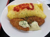 本日の昼食は、ご飯・中華スープ・かに玉あんかけ・ハム和え・漬物・フルーツでした。