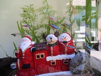 玄関には雪だるま⛄のイルミネーションが設置されました。