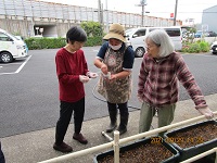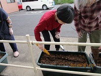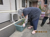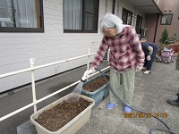 入居者様にもお手伝いして頂き、プランターに種を植えて水撒きをしました。