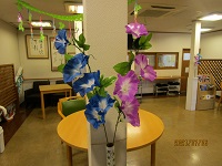 7月1日に行ったおやつレクの時に、スタッフの家のお庭に咲いていた紫陽花を持って来て下さいました。