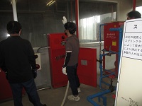 屋内消火栓の放水・担架搬送・非常放送を体験してきました。