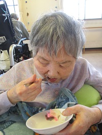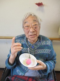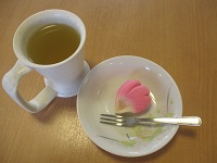 ストレッチ体操クラスで身体を動かした後は、桜の花びらがモチーフの「桜花(おうか)」という和菓子を召し上がって頂きました。