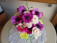小さい方は紫色のアネモネが華やかなアレンジメントになっています。