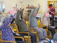 身体を伸ばしたり、深呼吸をしたりと気持ちよさそうに体操をされていました。