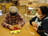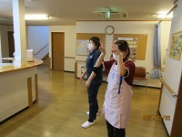 14時からは節分のイベントがあり、スタッフは踊りの確認中です。