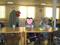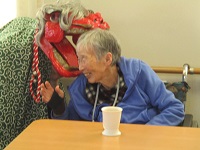 職員手作りの獅子舞と一緒に写真を撮りました。